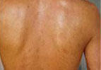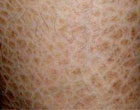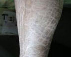 全身上下包括四肢、腹部、腰背等处皮肤都呈蛇皮鳞状,色泽黑褐, 粗糙龟裂,瘙痒难耐
